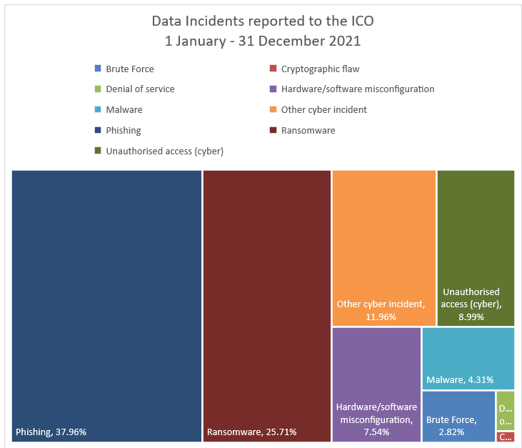 We have compared “incident type” data from the Survey against publicly-available statistics published by the UK Information Commissioner’s Office (“ICO”) for the same time period (1 January to 31 December 2021).