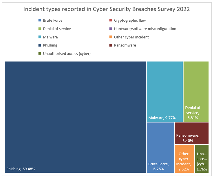 Due to the ease of implementation, phishing attacks (including SMShing and other social engineering scams) form part of the everyday reality for most UK organisations. However, they are also the most easily avoidable vulnerabilities, provided that organisations invest resources in staff training and technology solutions to minimise the risk of a successful phishing attack. Many business in the country have acknowledged this and provide regular training and simulated phishing campaigns, to maintain staff engagement and readiness. While phishing clearly remains the biggest attack vector in reportable data breaches, the percentage of successful attacks is encouragingly low. The National Cyber Security Centre (NCSC) recommends a 4-layer approach to phishing defences for individual organisations, available here.