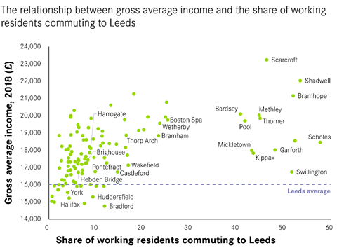 - And the higher the share of working residents who commuted to Leeds the higher the incomes of people living in these towns and villages.