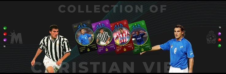 From left to right, the NFT cards show Christian Vieri playing for Italy, Juventus, Atletico Madrid and Inter Milan